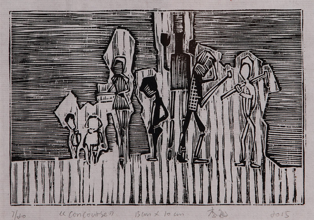 消失在地平线,伸手够不到的往昔,家的思念,梦的追悔,离那些天真烂漫的日子越发的遥远,但我想把他们永存下来,用黑白木刻的方式将自己内心的感受寄托于作品中,作品采用了一些童年时的元素,构成了整个画面,心中有爱,便可永存。