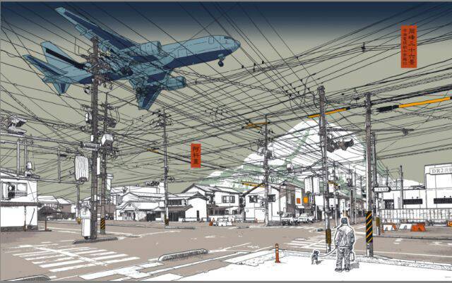 艺高高 / 版画世界 / 冈峰三十六景之街道布满线的十字路口