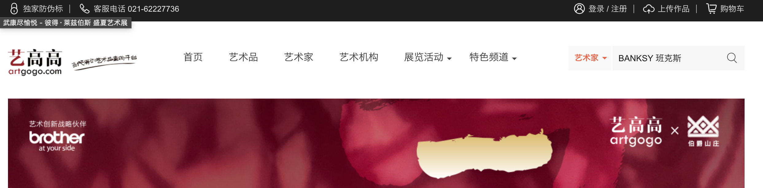 可根据艺术家姓名、艺术品名、画廊机构名进行搜索