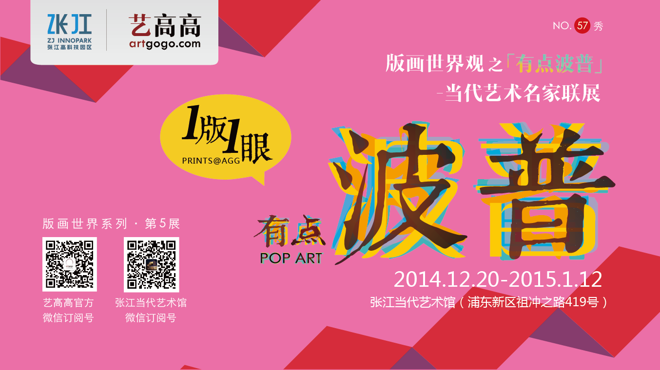 2014年12月20日-2015年1月12日,艺高高artgogo.com版画世界第5展“有点波普”当代艺术名家联展将在张江当代艺术馆展开!有点波普里,有的是一点中国味道的波普艺术,有的是具有时代味道的中国当