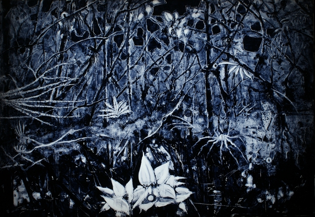 之前的创作是以人为主体,但是发现越熟悉,创作起来越受束缚。后来琢磨,既然主要是强调从自己生活经历中得到的感性认知,干脆把之前的积累全部破坏掉,就单纯释放自己表达的渴望,画心中奇异的景象。画面中的生物都在生长蔓延,一种野蛮生长的状态。而每一个色彩,笔触肌理都承载着我的精神能量。
