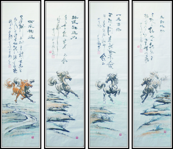 艺高高 / 艺术品 / 《路遥知马力》《一马当先》《伯乐相马》《马到成功》四条屏