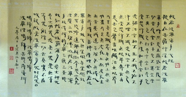 《般若波罗蜜多心经》略称《心经》。 全经260字.该经为最知名的唐玄奘所译的版本。《般若波罗蜜多心经》由浅入深地全部概括了《大品般若》的义理精要。 可谓言简而义丰, 词寡而旨深。 古来认为读此经可以了解般若经类的基本精神。