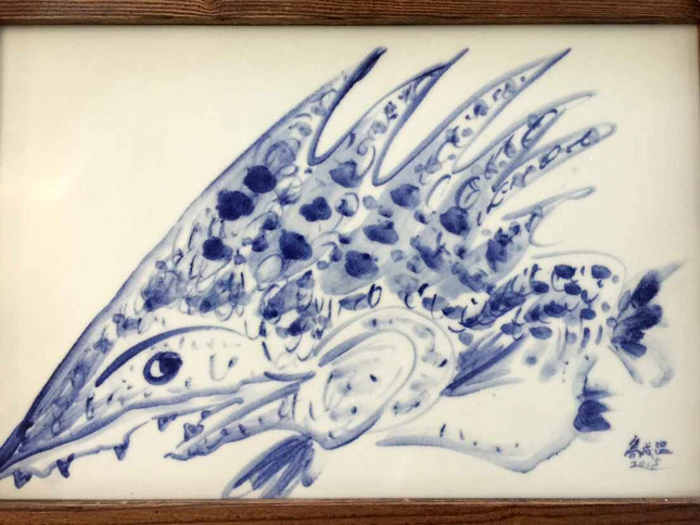 瓷板画,釉下青花,高温烧制。