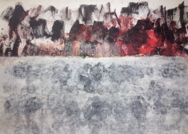 艺术家原创油画作品。用西方抽象的方式描绘中国传统山水的意境,透过云雾缭绕的田野,远处就是我魂牵梦绕的故乡老家。
