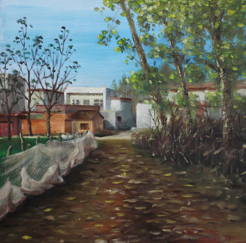 这幅画在描绘景色的同时也凝固了当时送我老婆小孩回娘家的心路历程,意图表达对这个村庄的一种情感寄托。