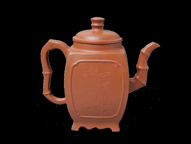四方竹节壶 陶艺:闻正荣 书画:颜梅华 陶刻:闻正荣 容量:大 品