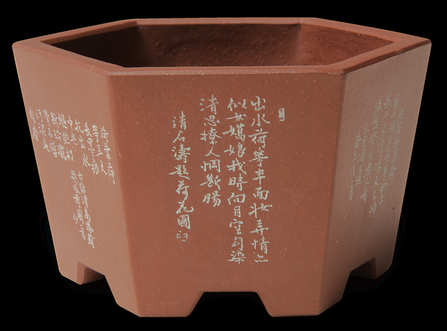 六角花盆陶艺:听雨堂陶刻:王超鹏书画:王超鹏