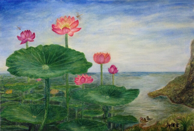 自古荷花多高洁,出于污泥而不染!此画是按中国古代美学原理和健身养生学原理创作的,有一定的健身作用!常看此画与练静养功作用相同。这种画法是我独创,世界领先!常看此画可使人心情愉悦健康长寿!此画是装饰和收藏的上佳画作,并且物美价廉。此画是原创作品全世界仅此一幅,画有价,但视野和格局及健康是无价的,希望您看过不要错过!本人长年定作养生古典油画和水彩画,内容包括肖像画风景画历史画动物画静物画等,可根据您提供的资料及描述进行创作,价格可商议。希望您喜欢我画的画,谢谢!