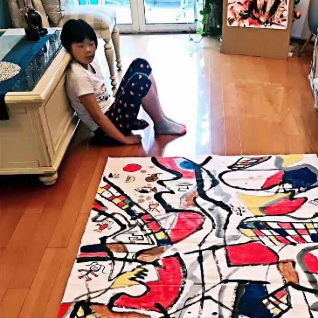 抽象中孕育了中国传统文化的根源。艺术家的漫画涂鸦的表现主义风格的作品,具有天真的趣味感和治愈性。