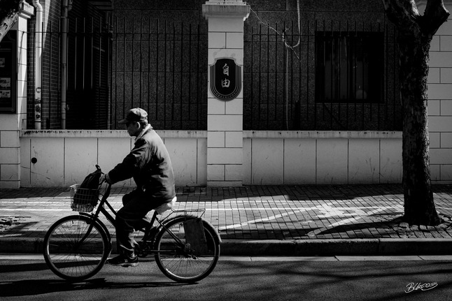 没有戴口罩,呼吸着新鲜空气的骑车大叔,何不是一位自由的追随者,在社会主义核心价值观前,奔向自由!