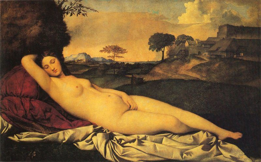 这是乔尔乔内最成功的油画作品,最后由提香完成。作品中的维纳斯展示出造化之美,没有任何宗教女神的特征:在自然风景前入睡的维纳斯,躯体优美而温柔,形体匀称地舒展,起伏有致,与大自然互为呼应。这种艺术处理不是为了给人以肉感的官能刺激,而是为了表现人的具有生命力的肉体和纯洁心灵之间的美的统一。这种充满人文精神的美的创造,是符合文艺复兴时期理想"美"的典范的。