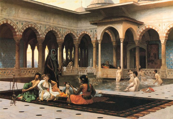 《后宫露台》创作者:让-莱昂·热罗姆 法国 规 格:80cm×102cm 材 料:布 油彩 存藏处:私人藏